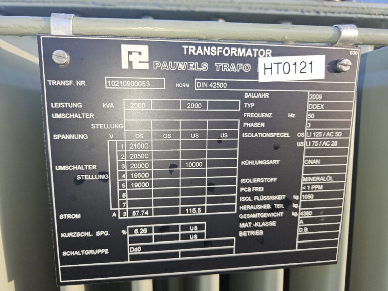 Pauwels 2000 kVA 20/10 kV Kuppeltrafo